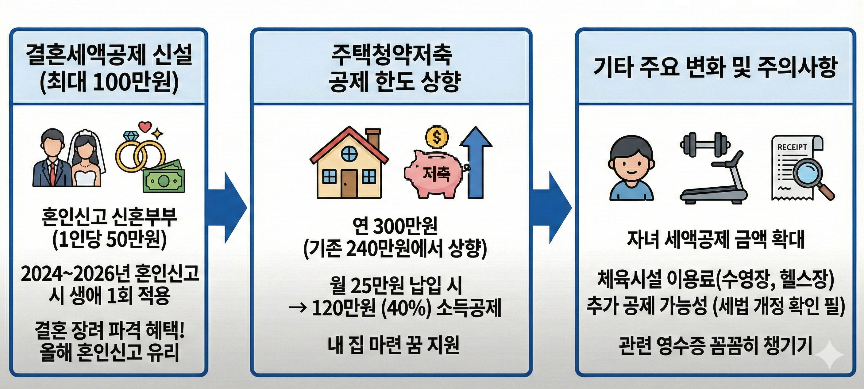 | 결혼세액공제 | 없음 | 부부 합산 최대 100만 원 신설 |